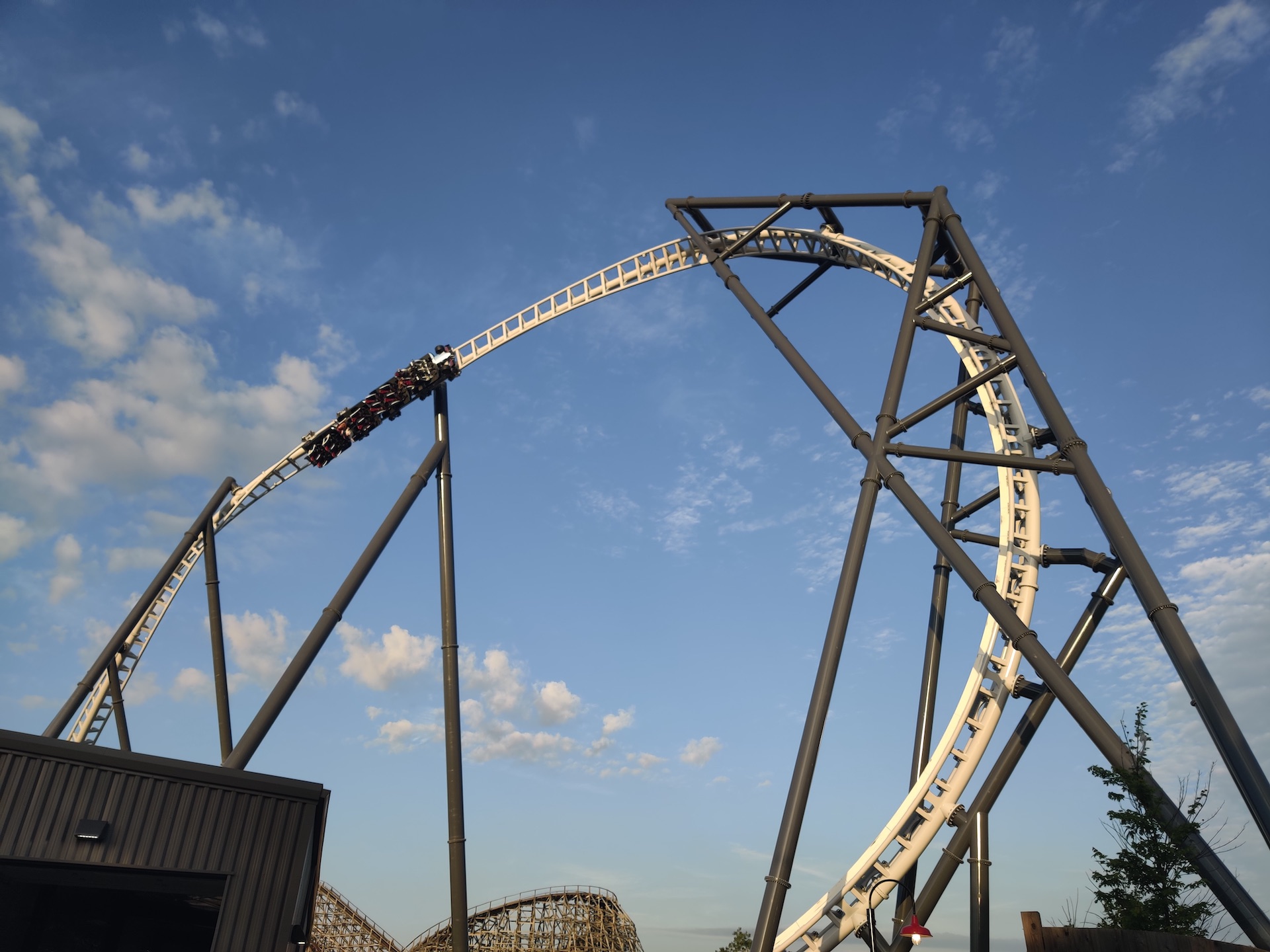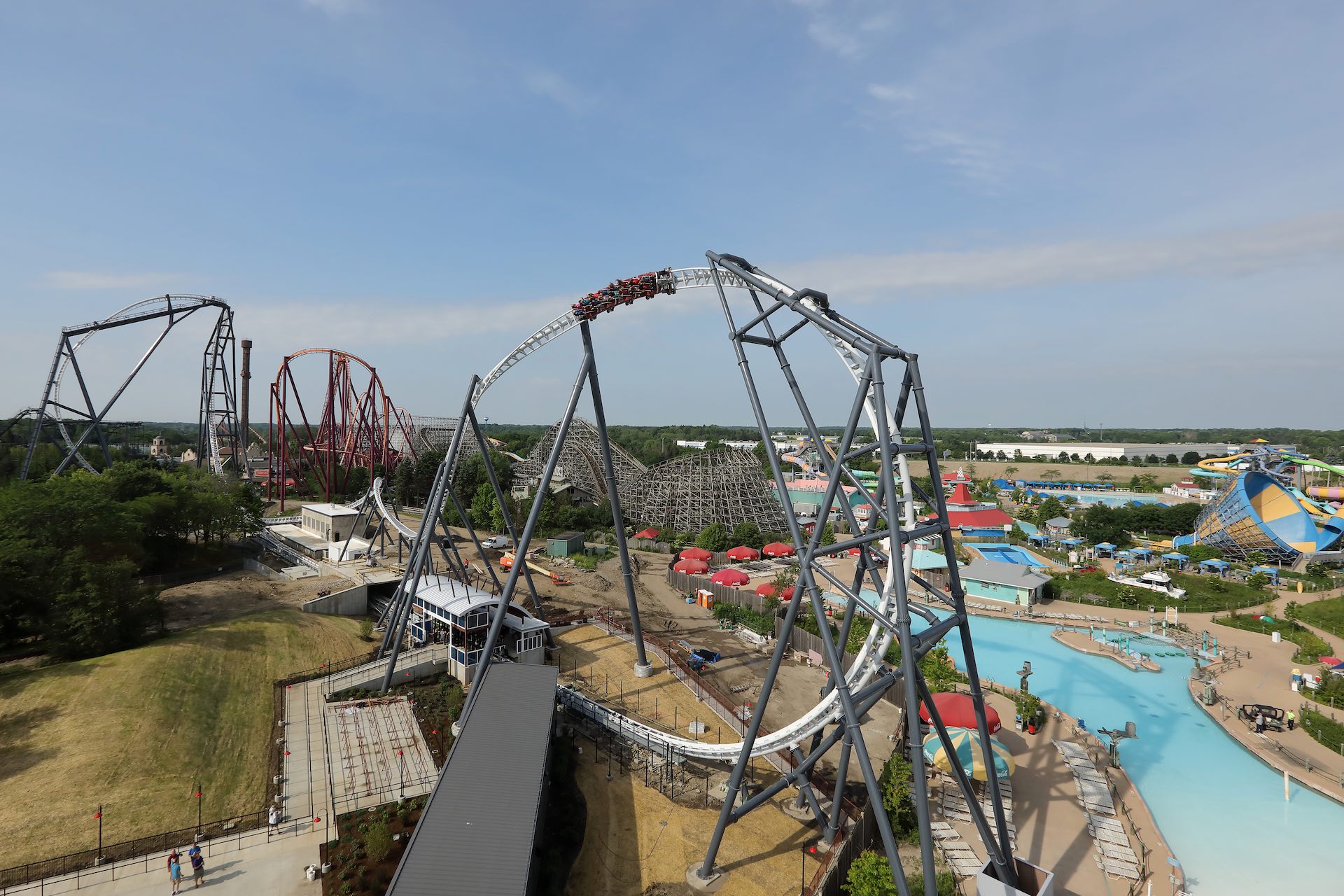 The coaster sports two trains, each seating 16 passengers.