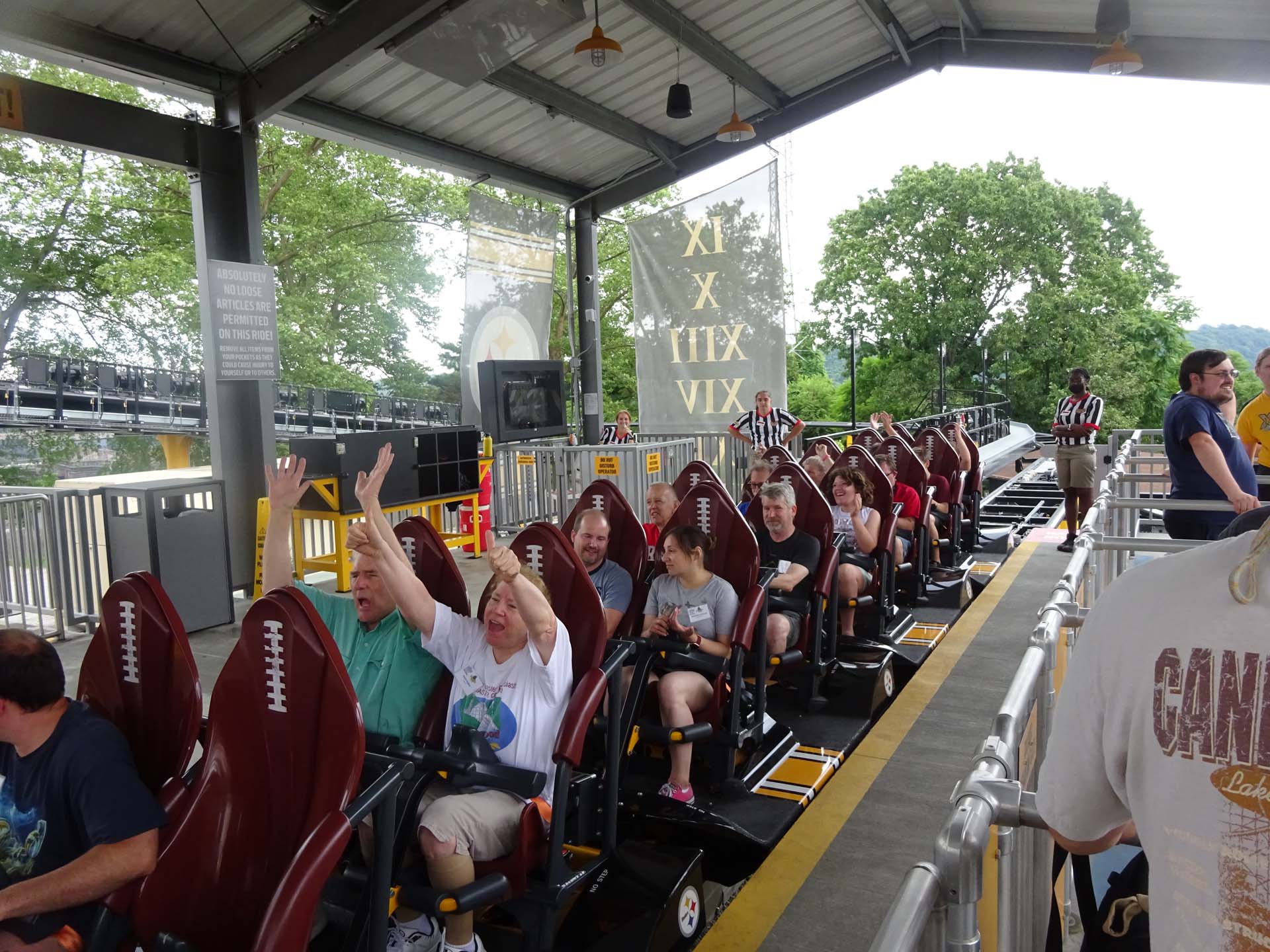 A number of KennyKon attendees had never been to Kennywood, so after lunch there was plenty of time to experience this 123-year-old National Historic Landmark amusement park. Rides celebrating significant anniversaries this year included some with big numbers: Old Mill (120 years), Whip (95), Auto Race (90), Noah’s Ark (85), Lil’ Phantom (25), The Phantom’s Revenge (20; adding in Steel Phantom years makes 30) and the youngest, Swing Shot (15).