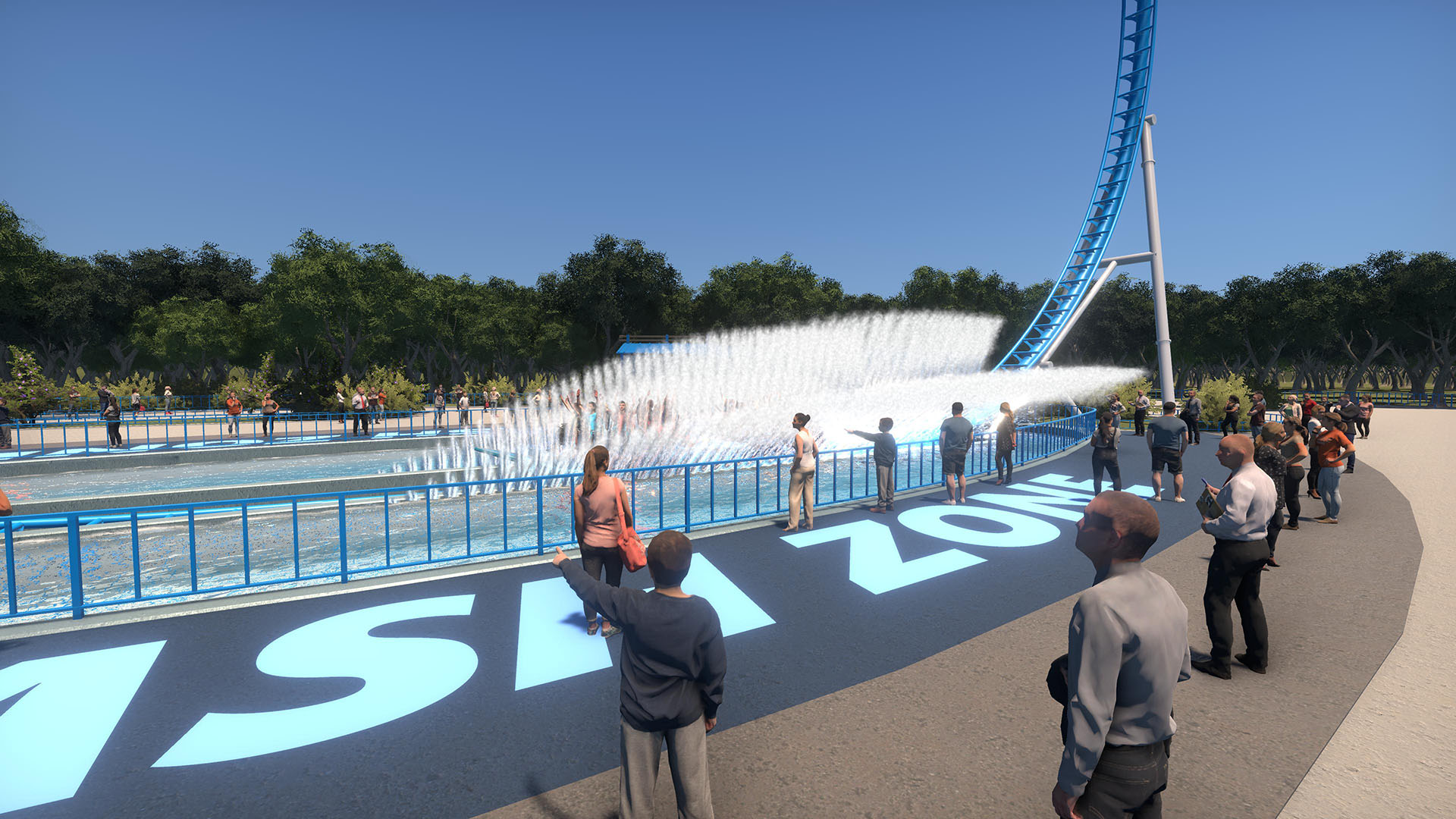 The biggest difference is that although there is a pool, the coaster vehicle never comes in contact with the water. Synchronized jets create a variety of options. Interested parties — and who isn’t? — can see the animation here: https://www.youtube.com/watch?v=IgewcovnGJsV. Vertical walls of water, splash zone waves or a vortex tunnel of water are possibilities. Because the coaster vehicle never comes in contact with the water, adjustments can be made for seasonably cooler months.
