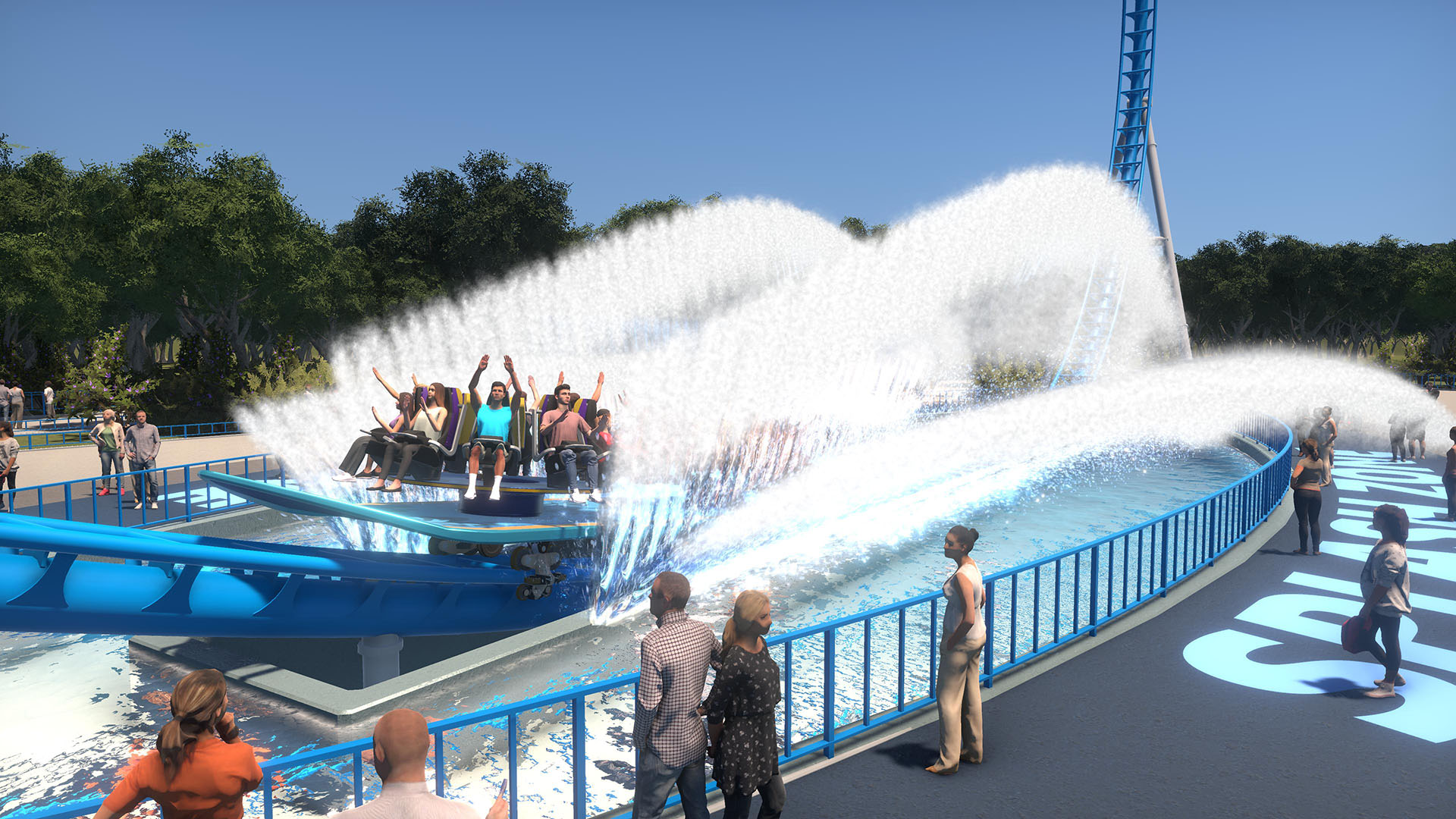 The concept is simple: a boat uses linear synchronous motors to traverse a section of track with two vertical reverse ends. In the center is an airtime hill. By increasing launch speeds, the boats climb higher on the reverse points with each pass along the track. On the final trip up the back end, a pool of water fills just enough over the track in mere seconds to create an incredible wave when the boat plunges and skims into the pool.