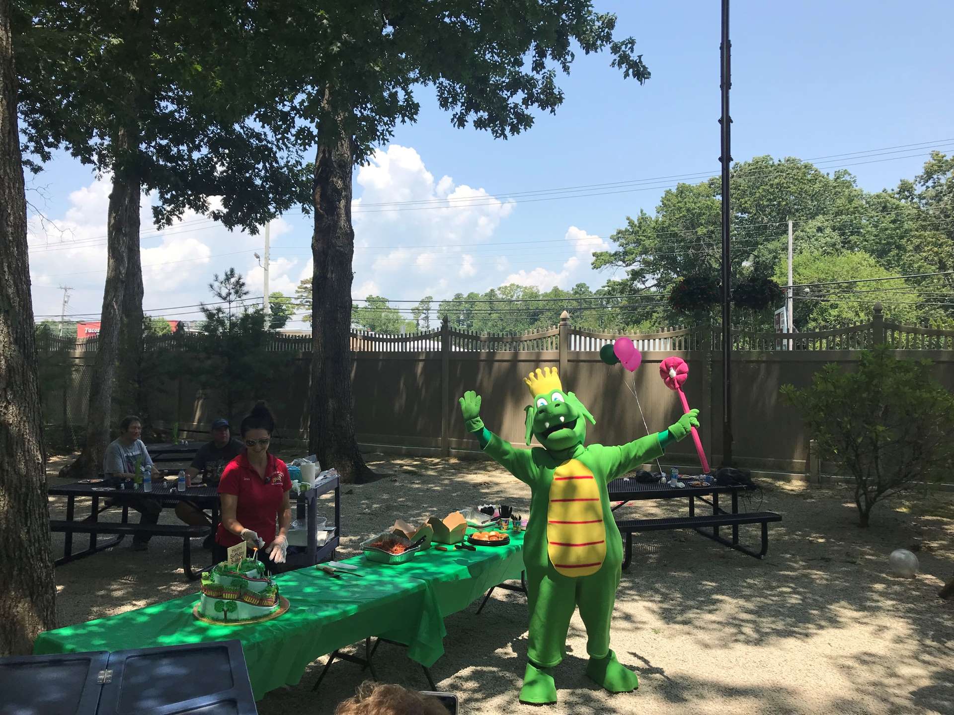 So, to mark the occasion of Bubbles’ 20th birthday, and to thank ACE for its support and friendship, the Storybook Land family decided to throw a party in the summer of 2020 and invite ACE. However, 2020 being the year it was, the big event was forced into 2021. (There was the thought among a few in ACE to make it a Bubbles cocktail party for his 21st, but no one wants to see our dragon pal slapped with a CWI* citation … not to mention, this is a family park.) The date was set for July 17, invitations were sent and 38 members and guests preregistered for the event — not a bad number for a Saturday at the height of summer.