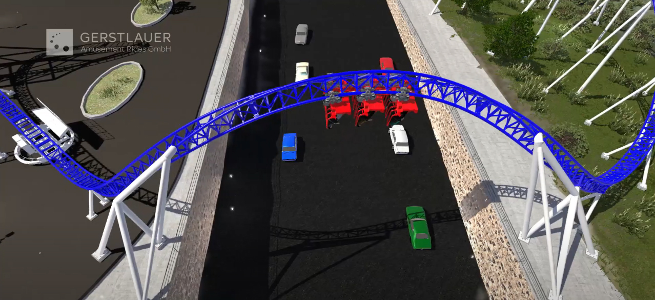 The vertical lift is a maneuver most ACEers have seen before, but what follows is totally different. The steep dive off the lift twists during the plunge. From there it is all cool stuff. Elements such as a flipped wave turn and inline twist are delightfully acrobatic, but what’s sure to get big attention is the zero-G stall. This upside-down inversion takes place over guests … in their cars … on a road! It’s like a move from Waldameer’s (Erie, Pennsylvania) playbook — but upside down. Yes, that’s eye opening.