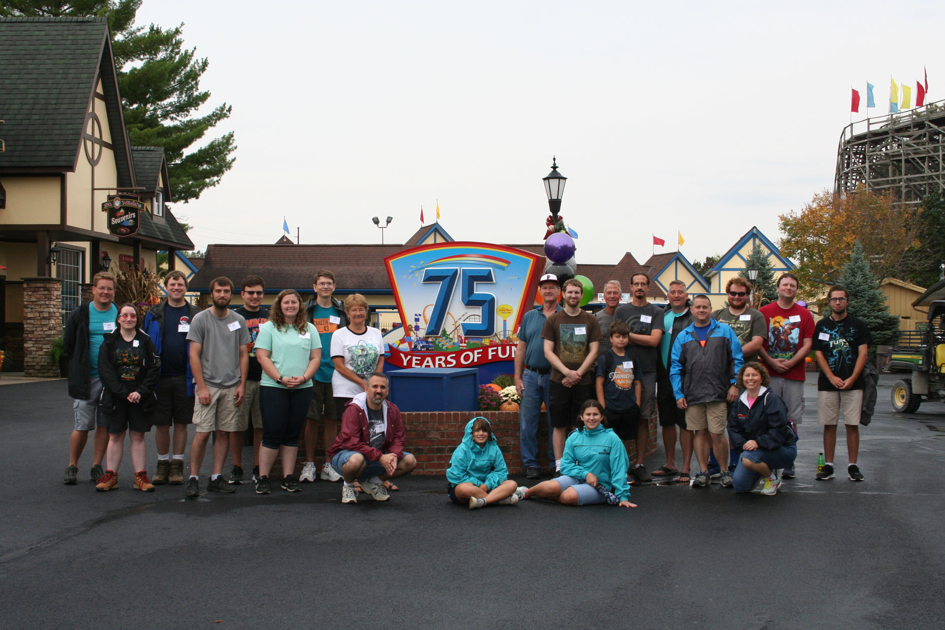 As in the past, the day started with a walk through the woods and around The Raven and The Legend roller coasters to beat the crowd to Thunderbird for the first rides of the day. Attendees competed on Gobbler Getaway at their leisure, taking a picture of scores at the end of the ride and submitting them throughout the day. Jean Lines was announced as the winner of the contest at dinner and presented with a 75th anniversary coffee mug as a prize.