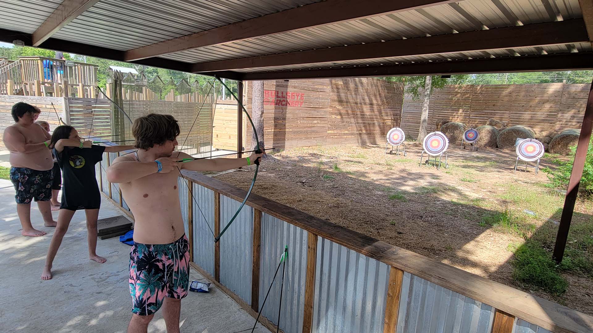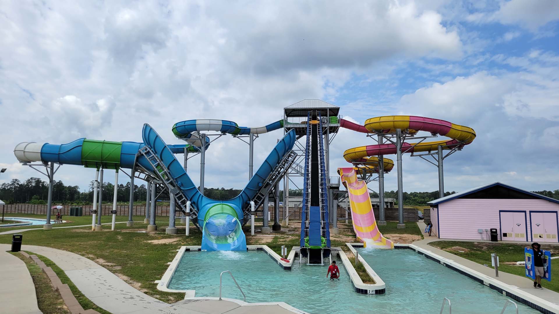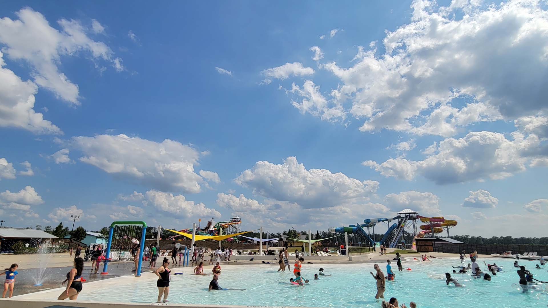 The waterpark consists of several attractions, including a dozen slides, a huge activity structure, a wave pool and a lazy river. But there is much more to do than just water attractions. In addition to the waterpark, attendees were able to enjoy ropes courses, ziplines, a petting zoo, a maze, gator interactions, axe throwing, archery, an inflatable waterpark on a lake and more.