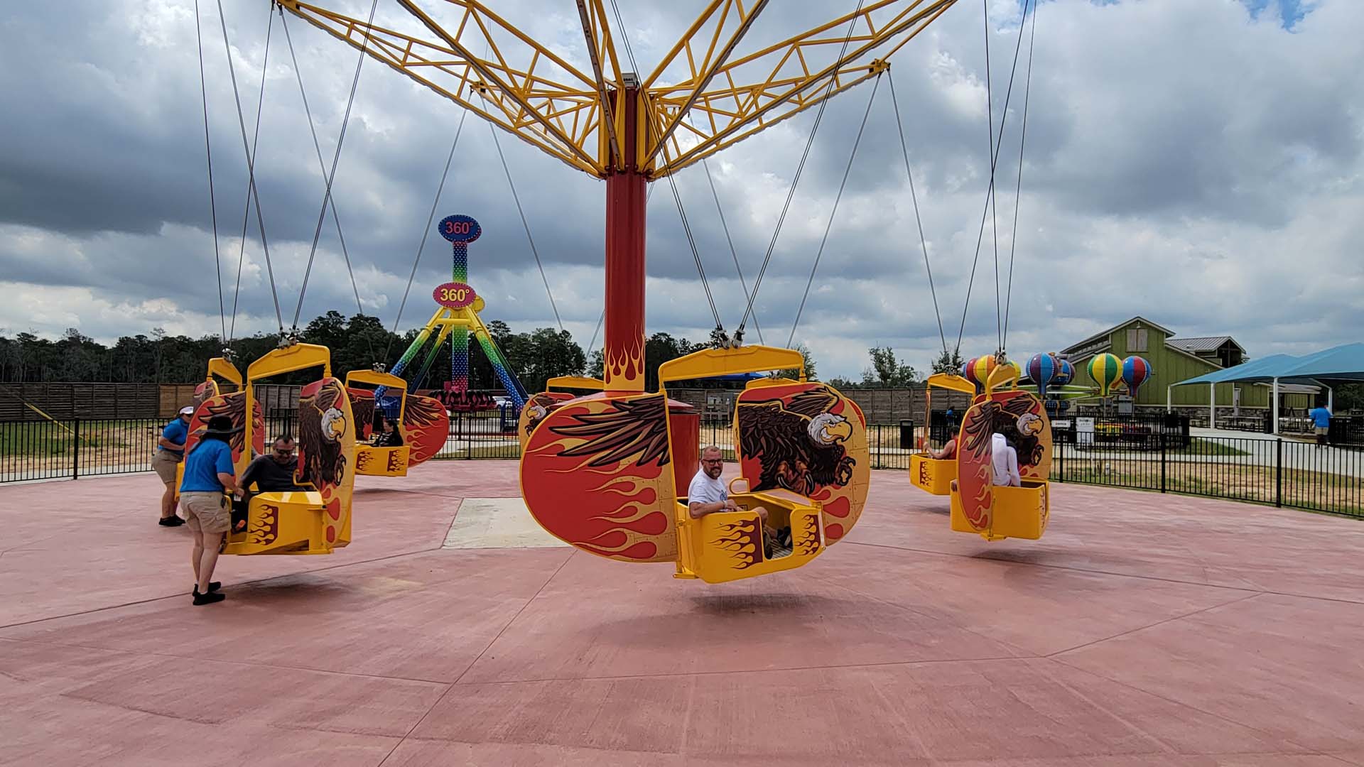On Saturday, May 14, 47 ACEers and Thrill Seekers United members gathered at the front entrance of Big Rivers Waterpark & Adventures in New Caney, Texas, just north of Houston, for a first-ever event at the park. Wristbands were distributed that included admission and a deluxe meal of the attendees’ choosing. To start the day, attendees were led into the park to a pavilion reserved all day just for the group and then over to the new Fairgrounds section to enjoy some ERT on the park’s newest attractions, including Rolling Thunder, an SBF spinning coaster. After ERT, attendees were free to enjoy all the attractions the park had to offer — and there were a lot.