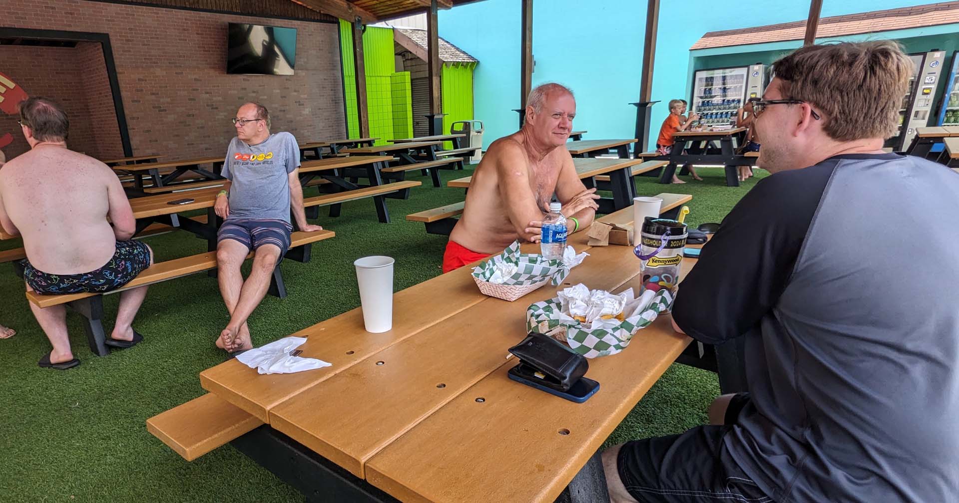 At noon, an informal lunch meetup was scheduled at Crab Apple Jack's, where attendees could sit in the shade after buying food from any of the stands in the park. ACE Western Pennsylvania Assistant Regional Representative Brett Weissbart, who planned the schedule for this event, clearly knew that an ideal activity after lunch would be an informal takeover time on the Lazy River. For this popular activity, attendees floated not once, not twice, but three times around the course, trying to stay together without causing a traffic jam in the river.