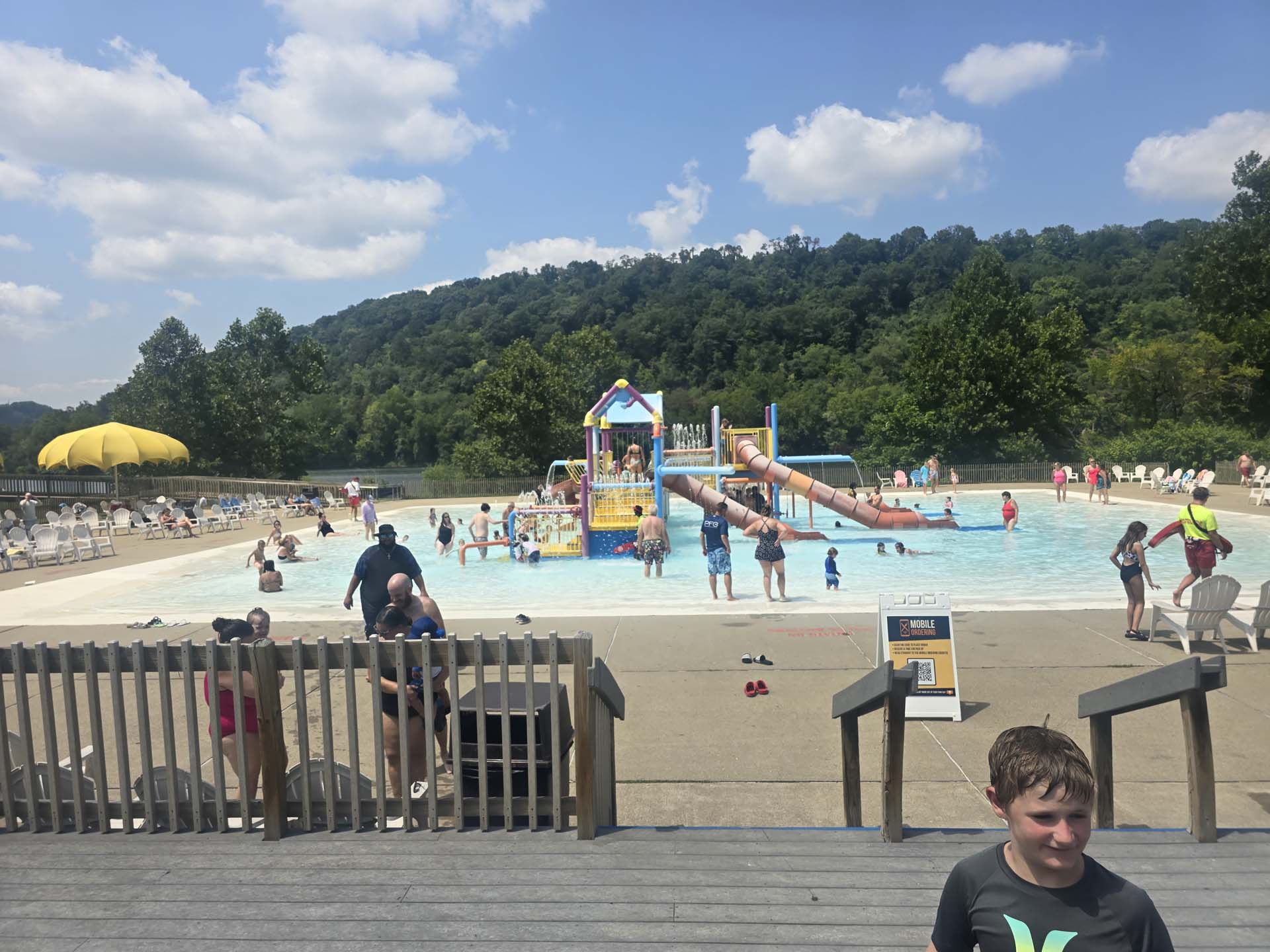 Fifteen ACE members took advantage of the offer to meet on a sunny, hot day at this beautiful waterpark along the shores of the Monongahela River. Sandcastle’s location used to be a portion of the site of a sprawling steel mill, and the railroad bridge and tracks that transported supplies to the mill can be seen from the park. Attendees met in at the entrance, along with season passholders, for early admission to the park (Sunday was also passholder appreciation day). EST (exclusive slide time) was offered from 10 to 11 a.m. on the giant waterslides Blue Tubaluba and Bombs Away, plus shared time with the season passholders on Dragon’s Den and the Mon Tsunami Wave Pool. Beach chairs are first-come, first-served and are free, so attendees could stash their towels for the day.