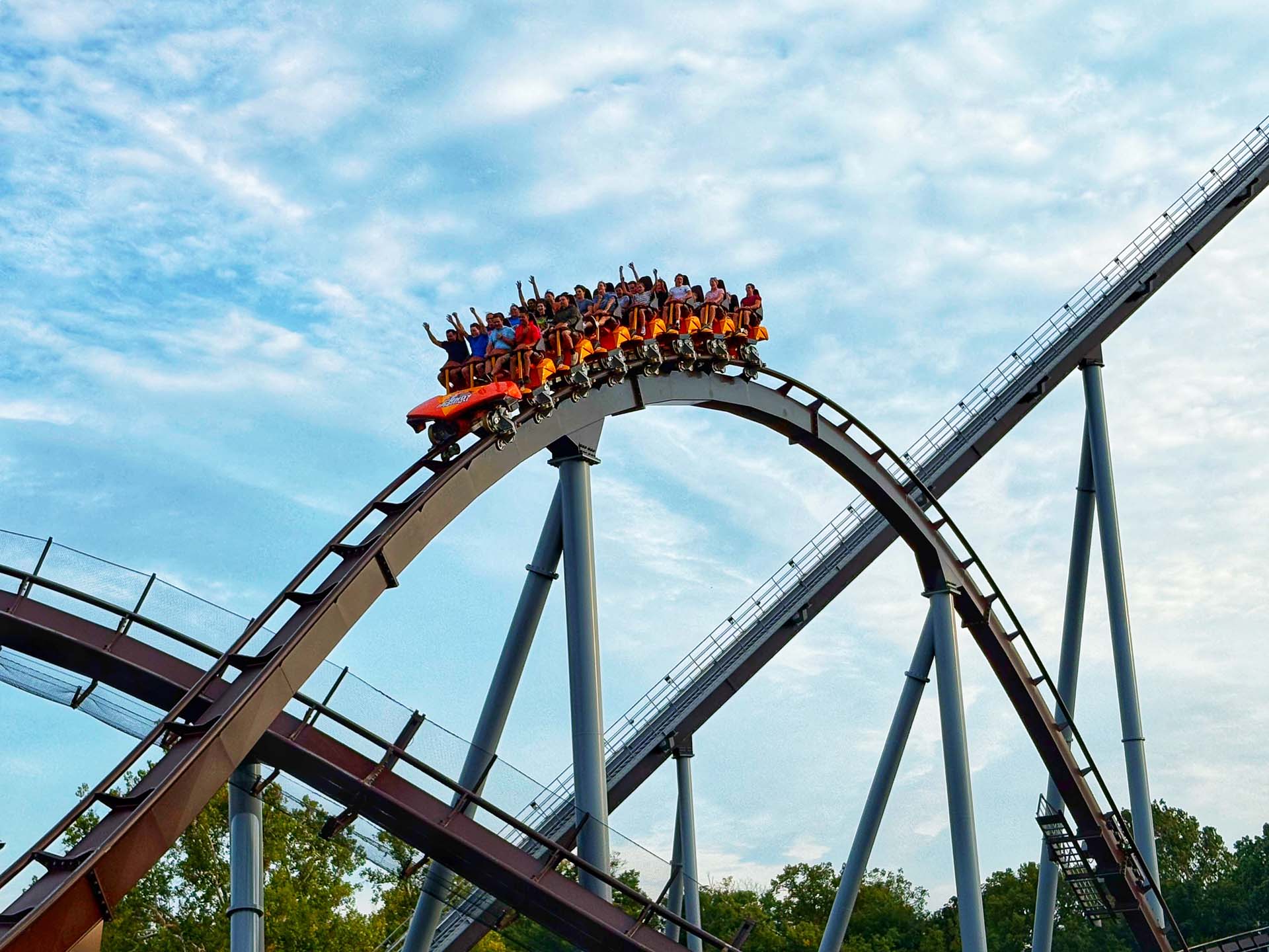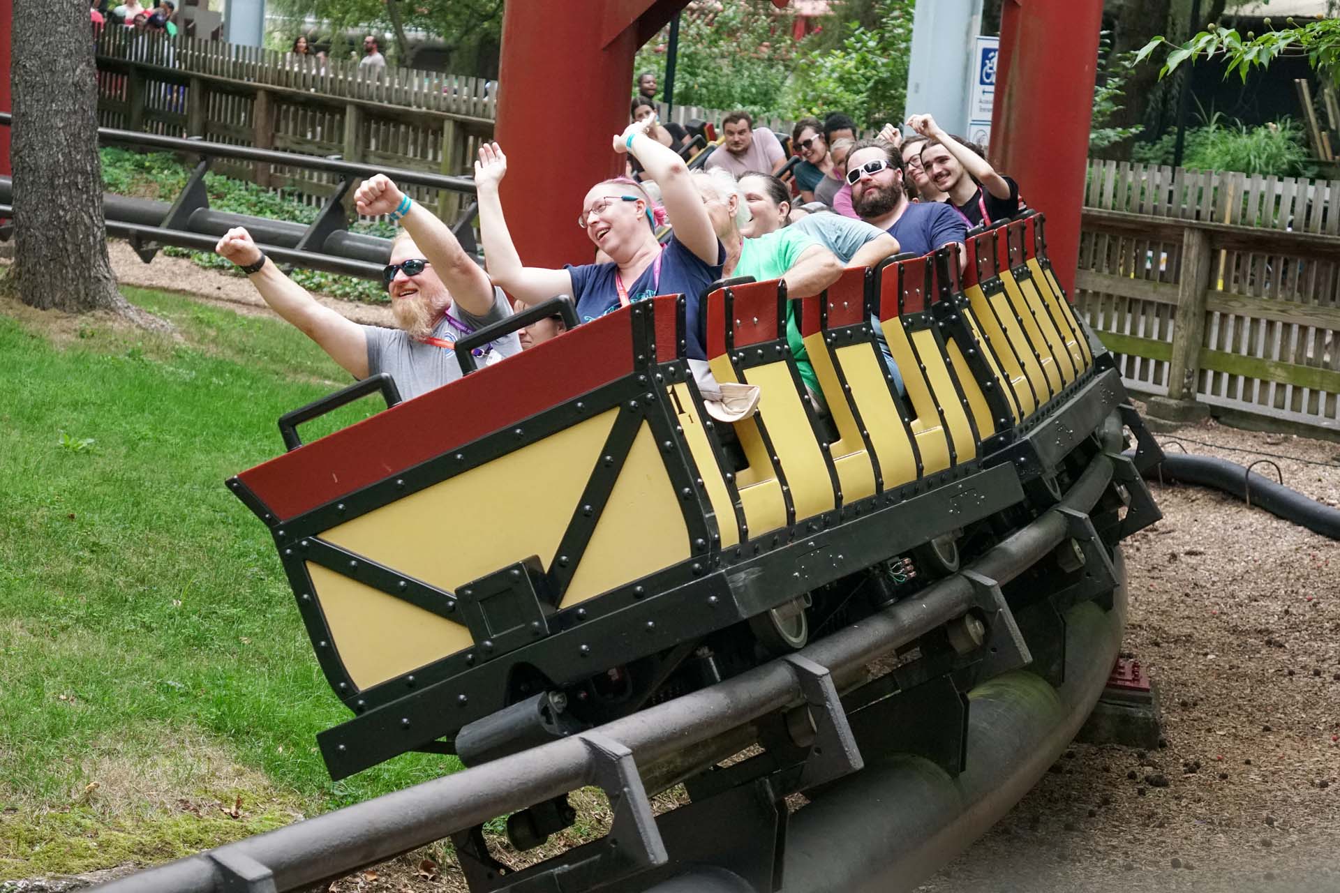 In addition to the tour, there were various informal takeover times (ITOTs) scheduled throughout the day, which included the Arrow mine train Trailblazer, Kissing Tower and Frontier Flyers. Guests could also enjoy the park’s other rides, including five that celebrated milestone anniversaries in 2025. Kissing Tower and Twin Turnpike both turned 50, and the dueling Great Coasters International, Inc. wooden coaster Lightning Racer turned 25.