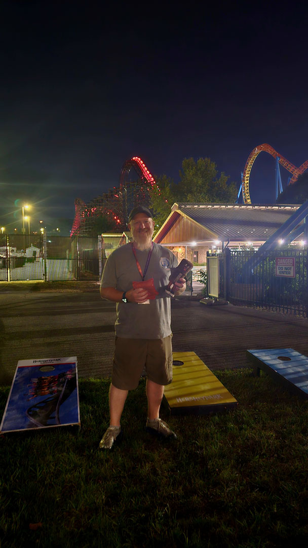 As the sun set and the park closed to the public, attendees gathered at the Fahrenheit pavilion to wait for Hersheypark’s staff to clear the park. While waiting, guests were welcome to join a friendly Corn Hole Contest. Congratulations to Mark Warren who won the competition with 10 points in the final round.
